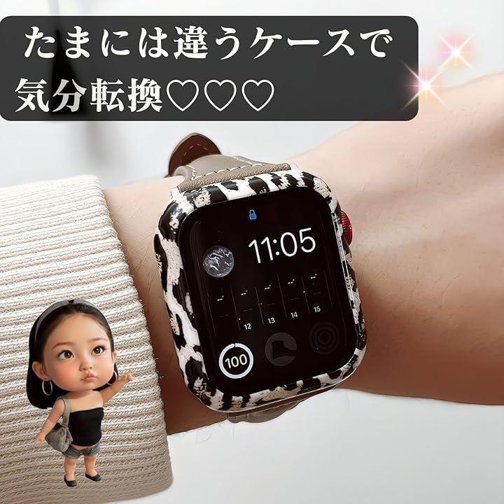 ホワイトヒョウ柄のアップルウォッチカバー。