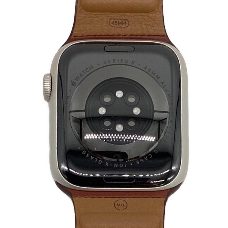 ■商品状態程度B:通常程度の使用感があるお品物バンドに薄汚れ・黒ズミあり。こちらの商品は小キズやヨゴレ、若干の使用感などが見受けられます。また店頭にて展示販売を行っている為、記載に無いキズ、ヨゴレなどが見受けられる場合がございます。■商品説明ブランド :Apple (アップル)アイテム名:Apple Watch Series 8 Starlight Aluminum Case 45MM型番 :MNP93J/Aケースサイズ:45㎜バッテリー性能:92%動作確認 :済バンド :Umber Lether Link M/L備考:本体のみ(付属品無)※内部アプリの動作、及び通信契約サービスに関連する保証は致しかねますためあらかじめご了承くださいませ。またバッテリーに関しての持続時間については中古品という特性上保証が難しくなっております。合わせてご了承くださいませ。■付属品本体のみ■その他必ず、商品注文される前に店舗情報に記載している注意事項をご確認ください。