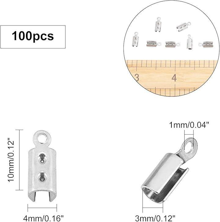 サイズ&入り数:コードエンド:直径:3mm、長さ:10mm、穴径:1mm;内径:4mm;100個入り;材質:304ステンレススチール;お得な大容量の金具セット、ネックレス、ブレスレットなどDIY ジュエリー作りのためのグレート。