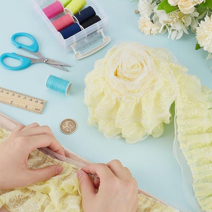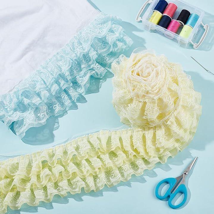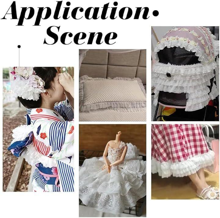 [材質]:このレーストリムは高品質なポリエステルで作られており、フリルの飾り付きで美しい。