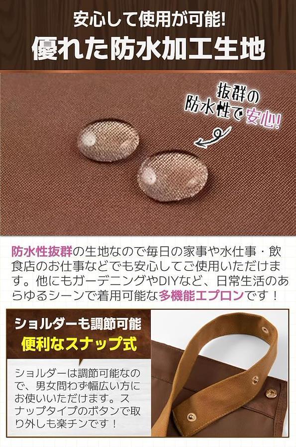 「優れた防水加工生地」防水性抜群の生地なので毎日の家事や水仕事・飲食店のお仕事などでも安心してご使用いただけます。