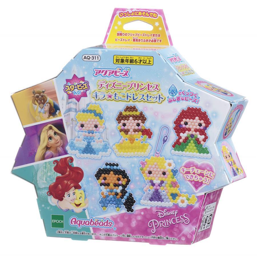 お水でくっつくアクアビーズを使って、いろんな作品をつくっちゃお!アクアビーズはビーズをビーズトレイに並べてお水をかけると、ビーズ同士がくっついて固まります。「アクアビーズ対応」等の表記がある類似品に関しましては、弊社では品質保証致しかねますので、ご注意頂きますようお願い申し上げます。大人気キャラクター「ディズニープリンセス」のシンデレラ、アリエル、ベル、ジャスミン、ラプンツェルがつくれます。スタービーズの質感がドレスのキラキラした輝きやふわふわのレースにぴったり!※こちらの商品はビーズとイラストシートがセットになった商品です。別売りのフリップビーズトレイまたはビーズトレイと専用きりふき、またはそれらがセットになったアクアビーズ商品と一緒にお楽しみください。【セット内容】・まるビーズ 12色 約530個、キラキラビーズ 4色 約70個、スタービーズ 10色 約210個 合計26色 約810個 ・チェーンパーツ×5、カラーストラップ×5、イラストシート2枚(3種) アクアビーズはビーズをビーズトレイに並べてお水をかけると、ビーズ同士がくっついて固まります。 大人気キャラクター「ディズニープリンセス」のシンデレラ、アリエル、ベル、ジャスミン、ラプンツェルがつくれます。スタービーズの質感がドレスのキラキラした輝きやふわふわのレースにぴったり! ※こちらの商品はビーズとイラストシートがセットになった商品です。 別売りのフリップビーズトレイまたはビーズトレイと専用きりふき、またはそれらがセットになったアクアビーズ商品と一緒にお楽しみください。 (C) EPOCH