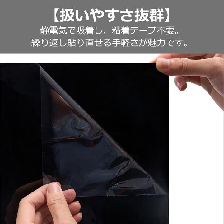 「扱いやすさ抜群」静電気で吸着し、粘着テープ不要。