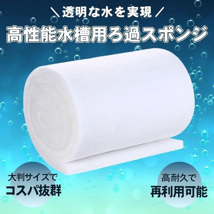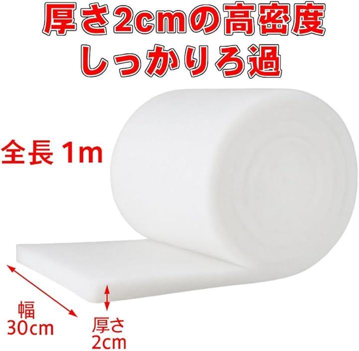 大判サイズであらゆる水槽に対応する、30cmx100cm・厚さ2cmの高密度ろ過マットです。
