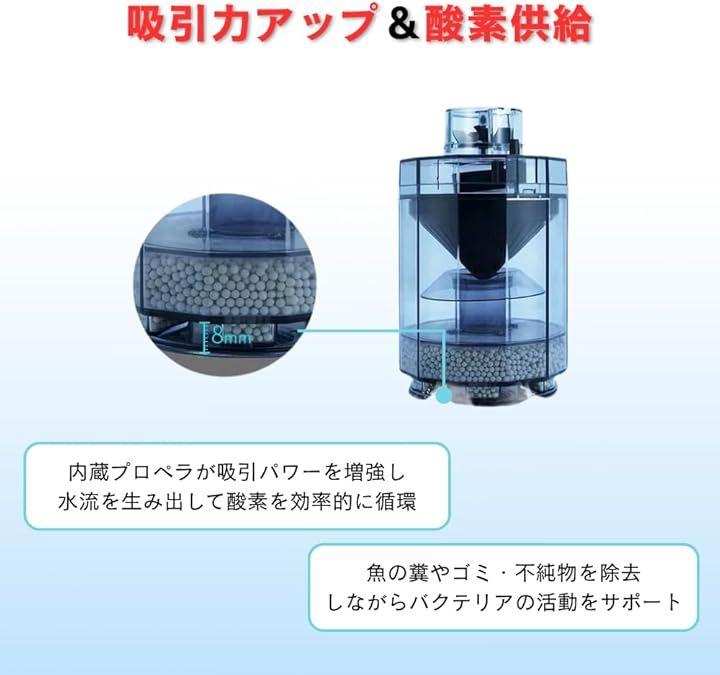 「吸引力アップ&酸素供給」内蔵プロペラが吸引パワーを増強し、水流を生み出して酸素を効率的に循環。