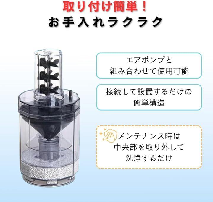魚の糞やゴミ、不純物を除去しながら、バクテリアの活動をサポートします。