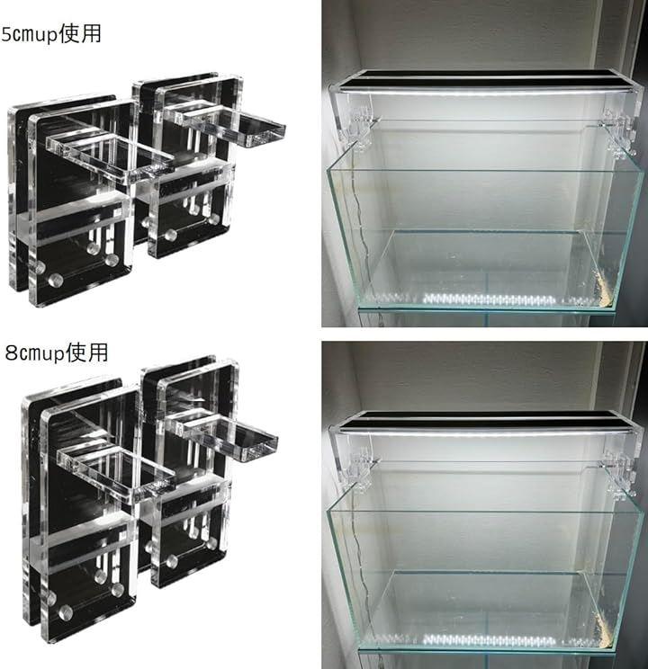 ライトによる飼育水温度の上昇軽減.光の強さ、範囲の調整.飼育水の蒸発軽減.5cmUP/8cm UPの2種類からお選びください。