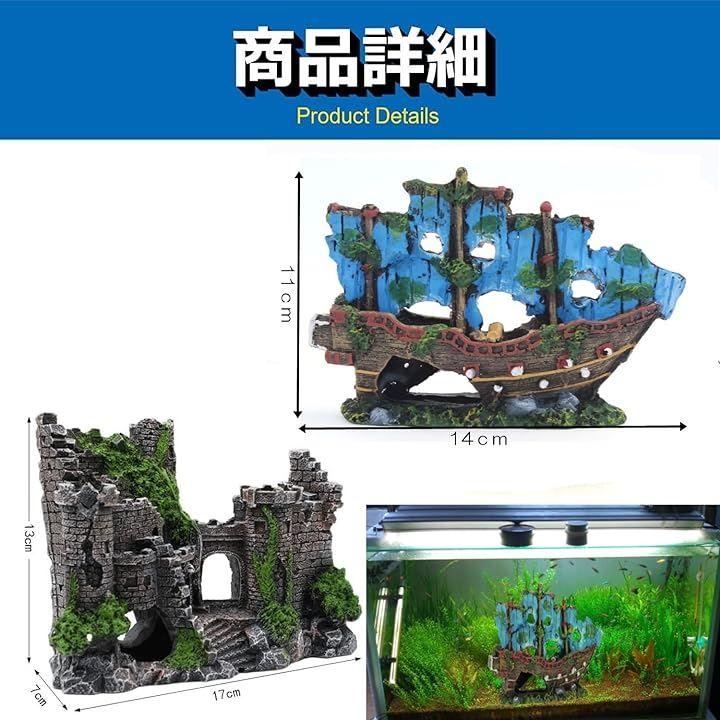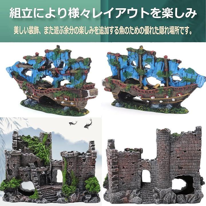 ・こちらの水槽オーナメント城と水槽オブジェ小船のセットは、水槽が華やかで色鮮やかになり、明るい印象を与え、デコレーションに丁度いいピッタリな幻想的なアクアリウム飾りの水槽グッズです。