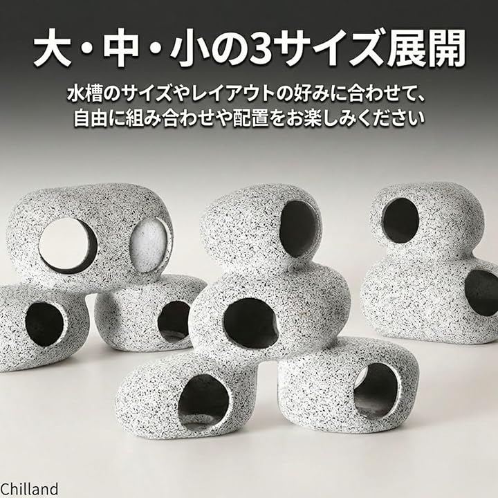 リアル感のある丸石オーナメント:自然石をモチーフにした丸みのある形状で、水槽内に違和感なく溶け込みます。