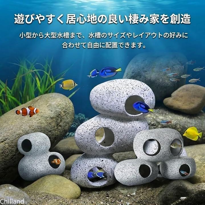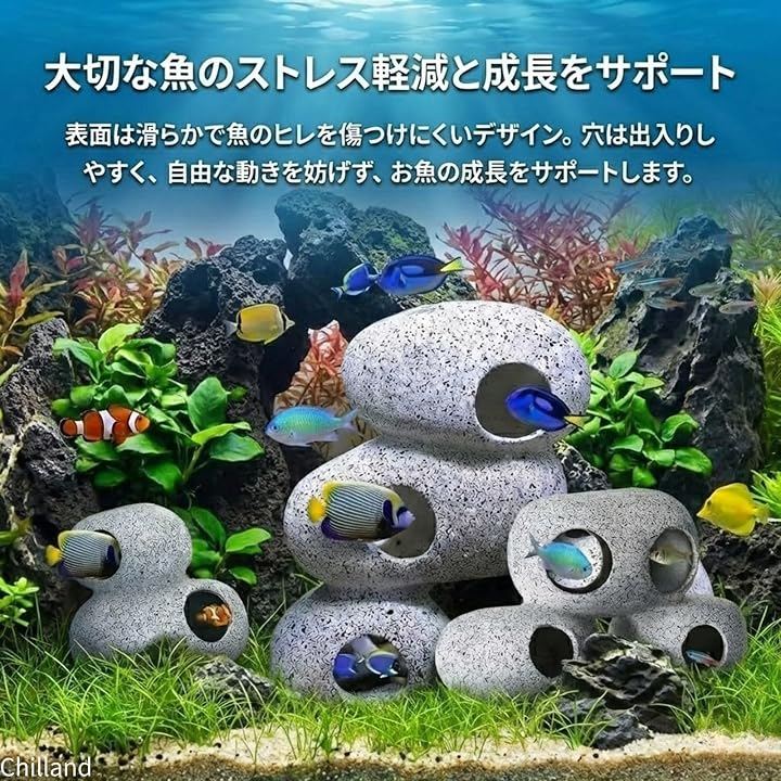 落ち着ける場所を作ることで、水槽内の環境づくりをサポートします。
