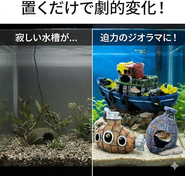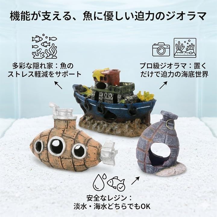 ディテールで、アクアリウム初心者から上級者まで、置くだけでプロ級のジオラマレイアウトが完成します。
