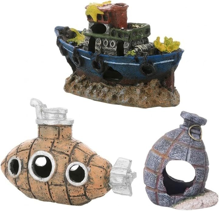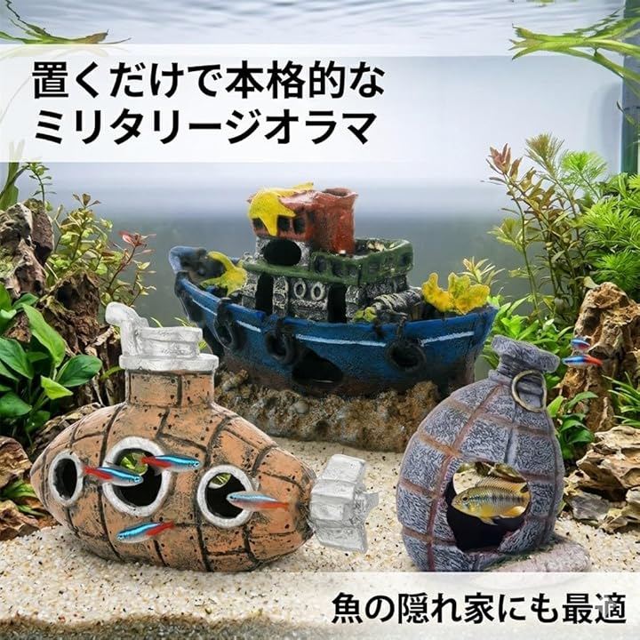 Aquarium Ornament Set: Fish Tank Hideout Set featuring Fighter Jets, Battleships, Tanks, and Submarines. Ideal for reptiles, reptile shelters, dioramas, military layouts, and fish/shrimp.