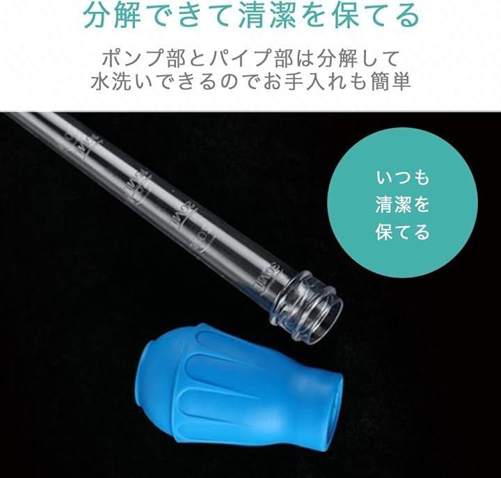 「製品仕様」 *全長:約45cm *容量:約50ml *素材:プラスチック(透明パイプ)、シリコン(ポンプ部) *用途:水槽の底砂掃除、水換え、稚魚やシュリンプの移動、活き餌の給餌など