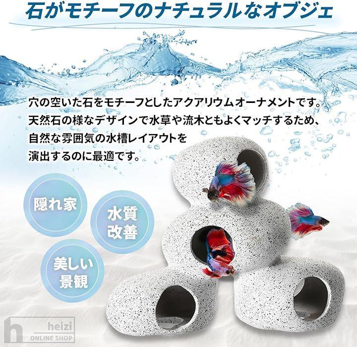 「水槽の水質改善にも」高温焼成セラミックで作られたオブジェは、水をろ過・浄化する性質を持っています。