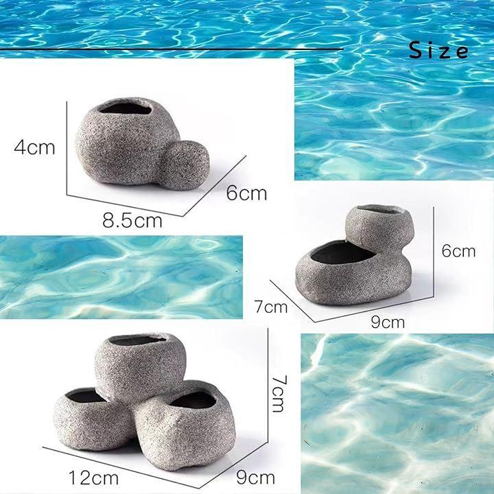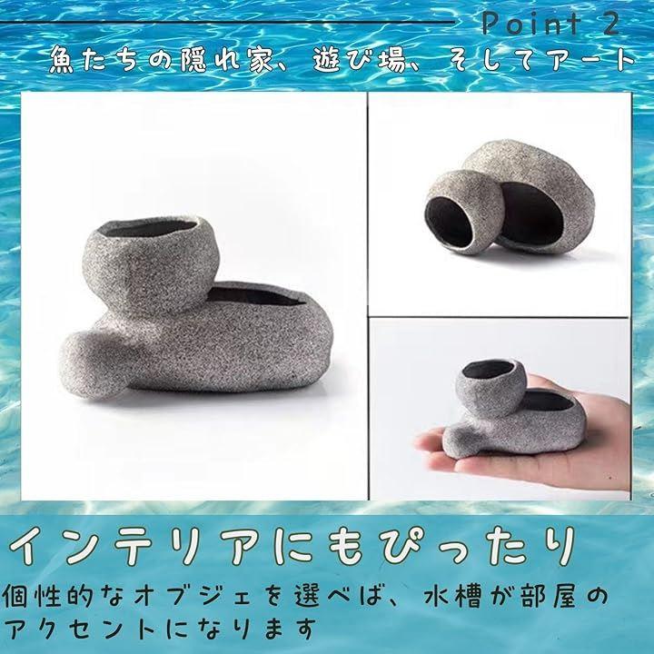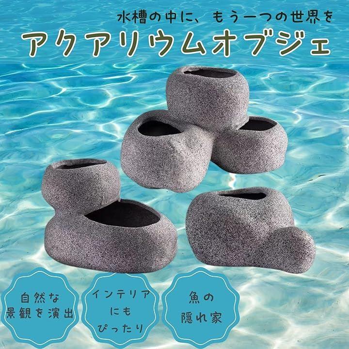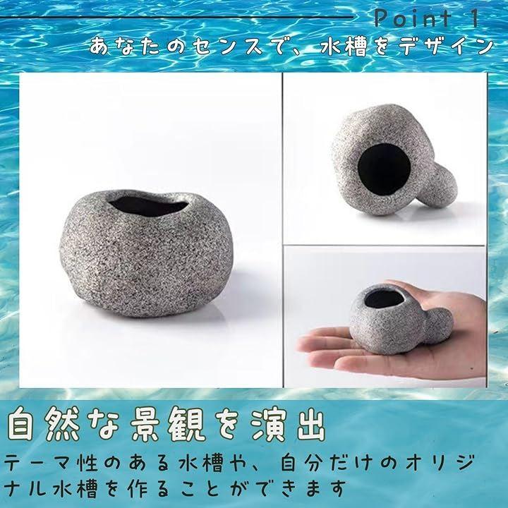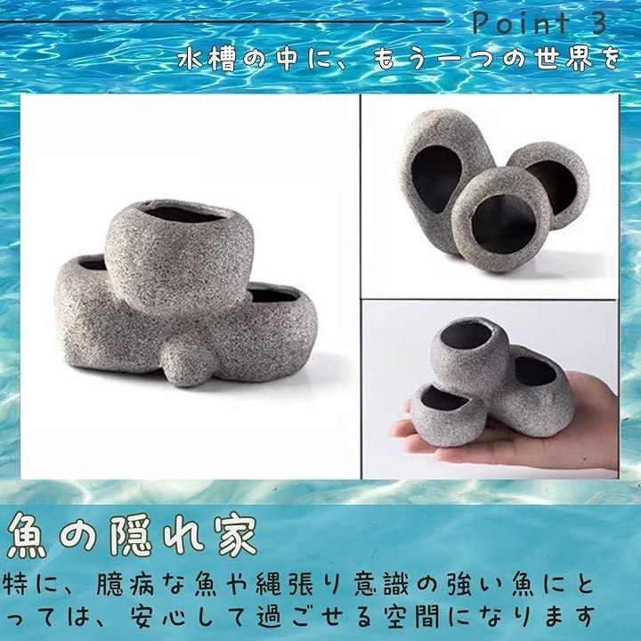 「魚の隠れ家」石やオブジェが魚のストレスを軽減し、快適な環境を提供。