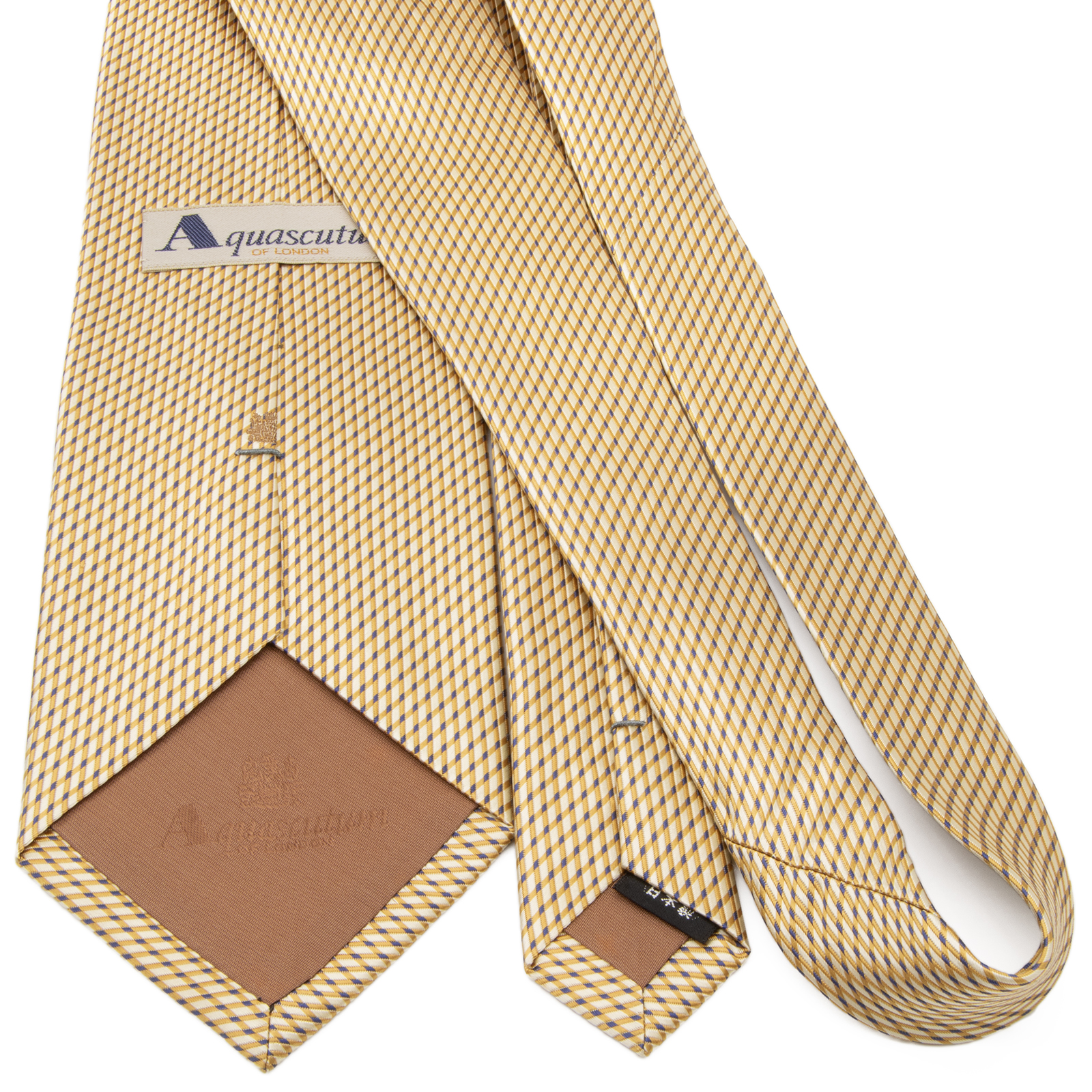 こちらは鮮やかなイエローが、Vゾーンに華やかさと活力を与えてくれる、アクアスキュータムのネクタイでございます。
