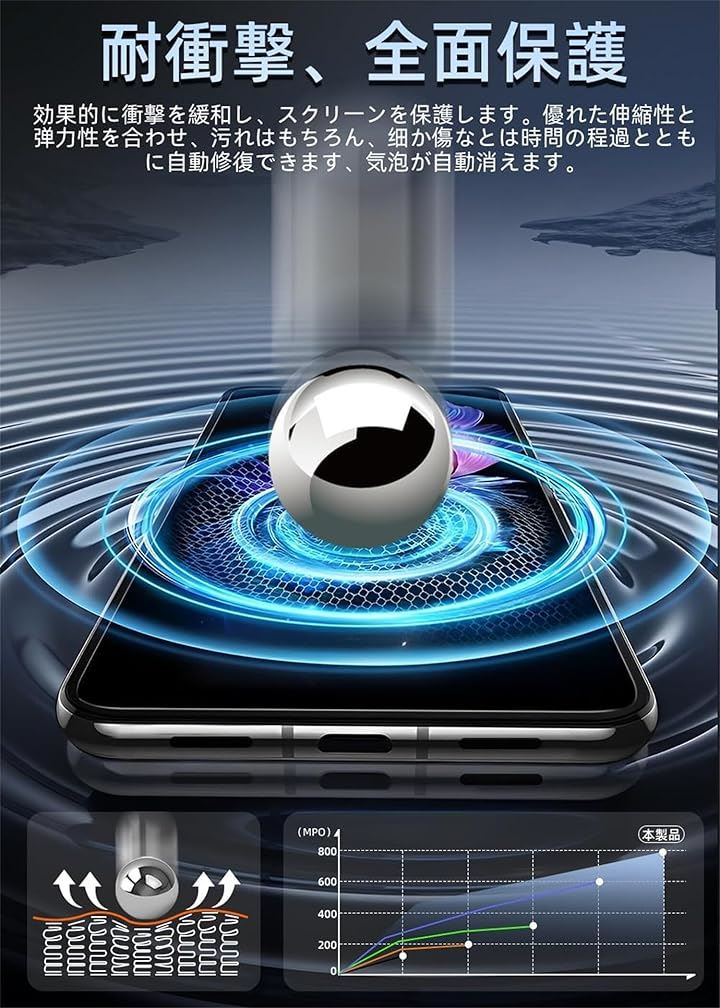 「柔軟な素材&バブルフリー」ご注意:保護フィルムは強化ガラスではなく、高品質の熱可塑性ポリウレタン(TPU)、柔軟な材料で作られており、スクラッチ防止、傷つきにくい、携帯電話の画面の曲がったエッジをカバーすることができ、傷に対して保護を提供します。