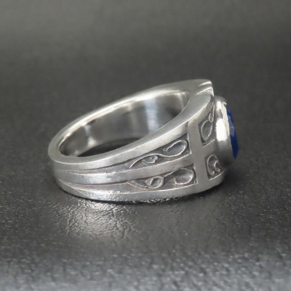 【モチーフ】 クロス、十字架、唐草、唐草模様、アラベスク ◆モチーフ意味 十字架といえばイエス・キリスト。 イエス・キリストは、人類を罪から救うため、十字架に磔刑に処されたといわれています。 そのため、十字架はキリスト教における救いのシンボルであり、特別な意味を持つ尊重されるべきしるしでもあるのです。 このような背景があるため、クロスは愛、救い、永遠、解放、生命力、復活など、多様な意味を持ちます。 また、クロスには守護の要素が強く、魔除けの効果があり、天からの加護や災いを跳ね返してくれる力が高まるともいわれています。 唐草模様は葉や茎、植物が伸びたり絡んだりした植物の模様でツタは生命力が強く、途切れる事なく伸びていく事から「繁栄・長寿」の意味があります。 生命力、永遠に力強く伸びつづけるという、縁起の良いイメージとされてきました。 ラピスラズリは9月と12月の誕生石で、「幸運を招く石」といわれ、邪気を退け、正しい判断力を高め、最高の幸運を呼び寄せてくれるとされる最古のパワーストーンです。 目先の結果にこだわらず、持ち主にとって正しい方向へ導いてくれると言われております。 ◆商品名 唐草クロスリング(RNG-291) ◆素材 シルバー925 スターリングシルバー ◆リング幅 最大12mm、最小4.5mm ◆ストーン 直径8.0mm ラピスラズリ ◆リングサイズ 9号~30号 ◆付属品 ジュエリーBOX、ショップ袋、品質保証書 *プレゼント梱包出来ます ◆実店舗 Grand Galleria(グランドガレリア) JR帯広駅より徒歩5分の場所にある2012年オープンのフラッグシップショップ。 ジュエリー工房を併設し、常駐する職人自らと打ち合わせも可能なため、修理や加工、お客様のご希望に沿ったジュエリーもお作りすることが可能です。 ◆オススメ使用シーン ・様々な贈り物に プレゼント 贈り物 誕生日 誕プレ 誕生日プレゼント バースデー バースデイ 御祝 御祝い お祝い 母の日 父の日 クリスマス クリスマスプレゼント Xmas 春夏秋冬 成人 成人式 卒業 卒業式 進学 就職 入学 金婚式 銀婚式 出産 結婚 開店 開業 定年退職 退職 移動 転勤 バレンタイン バレンタインデー バレンタインデイホワイトデー ホワイトデイ ごほうび ご褒美 御褒美 ・想いを込めて ありがとう 感謝 ごめんなさい 許して ごめんね よろしく おめでとう おめでとうございます 仲直り