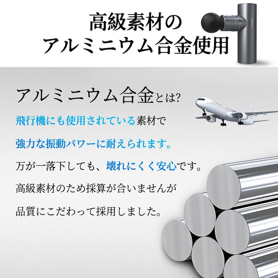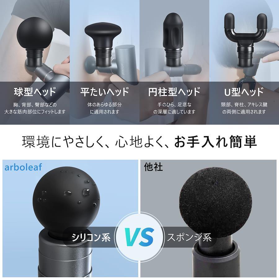 【全アルミ合金ボディ、衝撃に強い】 この筋膜リリースガンは、全アルミ合金ボディを採用しており、洗練されたクールな外観を持っています。金属素材により強度と耐久性が確保され、長寿命を実現しています。金属のボディが高級感を演出し、優れた選択肢となります。プラスチック製のきんまくリリース 電動ガンと比較して、より頑丈で安定性に優れた選択肢です。環境に優しくリサイクルが容易な点も魅力です。さらに、金属の冷たい触感は使うたびに心地よく、アルミニウムは熱を効果的に伝導し、リリースガンの過熱を防ぐのに役立ちます。 【5段階強力振動&自動モード付き】レベル1~4は手動モードです。ワンタッチで2000、2500、3000、3200回/毎分の振動強度調整機能を搭載します。レベル5は自動モードし、AIスマートセンサーを搭載しており、筋肉に押し当てる強さに応じて、1000-3000回/毎分の振動の頻度を自動調節します。ボタン操作などは一切不要です。 【調整可能な4つのヘッド&静かな動作音45dB】球形、U形、円柱形、平形のアタッチメントに交換可能。リラックスした状態で自然な姿勢でご使用いただけます。環境に優しい高品質のシリコン素材で作られたヘッドは、表面が柔らかく、使い心地が良いです。4つのヘッドとも防水性があり、汗や汚れを気にせず使用できます。高トルクブラシレスモータを搭載し、ノイズを効果的に制御します。最大3200rpm/minで、作動音は45dB(日常会話程度)未満の非常に低騒音。深夜に使用しても周囲の人の邪魔にならず、いつでもどこでも使用を楽しめます。 【Type-c充電&携帯便利】2000mAh×3大容量リチウムイオンバッテリーが内蔵されており、一回のフル充電で最大約8時間連続使用可能です。わずか500gで、パワフルで小型な設計のため、片手でも使えます。また、収納袋付きで、コンパクトに収納でき、持ち運びにも便利です。自宅でのご使用ははもちろん、職場/ジム/公園などにも簡単に持ち運び可能です。 【プレゼントに最適&一年メーカー保証】フィットネスに取り組んでいる方、友人や同僚など、幅広いお客様にご使用いただけます。あらゆる年齢の方にご使用いただけるため、ギフトにも最適です。ご購入した日より一年間メーカー保証サービスを提供いたします。万が一初期不良が発生した場合は、連絡先:アカウントサービス内の「アカウントサービス」→「注文履歴」→「arboleafJP」→「質問する」或いは説明書に記載されている他の連絡先に、お問合せ下さい。
