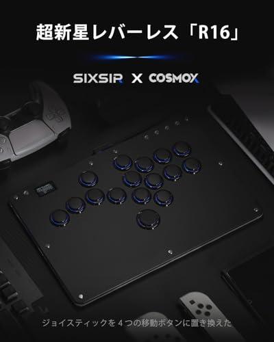 SIXSIR Leverless Controller: SIXSIR R16 Crystal Series - Acrylic Sandwich Artwork Template - 16 Key Crystal Low Profile Switch - Custom RGB - PC/Switch/PS3/PS4 Controller (Black) Add a new black color. The super nova leverless "R16" combines functionality and customization At only 1cm thick, this is the thinnest model in our Leverless series. Matte black plastic body for a high quality texture. Equipped with a button rim for increased pressure. The key cap is 20.6 mm in size, making it easier to slide input, and the whole palm fits on the top plate. Beautiful RGB lighting looks cool from the sides. Multiple RGB modes can be set to your preferred color The R16 leverless controller features a Kailth Crystal switch. Intuitive operation with a delay of less than 1 ms Replace the traditional arcade joystick with 4 moving buttons to reduce input errors. It can be used with hot swapping, so you can easily change the key cap or switch. And you can customize RGB lighting effects, table top template, and splash screen R16 is equipped with a wide variety of features including SOCD cleaner (simultaneous input), game mode switching, key assignment, continuous firing, turbo function, and EXT port. Simply connect the R16 leverless controller to your PC and access the web site (http://192.168.7.1/) Compatible with various models: The R16 leverless controller is compatible with S1, PS2, PS3, PS4, PS5, SteamDeck, Xbox360, XboxOne, Android, Linux, Switch, Windows 10 and later operating systems (keyboard mode only) and NEOGEOmini Sega Genesis and MegaDrive mini. Note: PS4 & PS5 & XboxOne: Dongle (sold separately) must be connected to the EXT port. If you use it on a classic game console, you will need to convert the cable. Specific setup instructions can be found at the link below: cosmoxgaming.com/support/ [Packaging]: R16 leverless controller (black) x 1, L-shaped USB cable x 1, Kailh Crystal switch x 1, Switch puller x 1, 0.2 inch (6 mm) button cap x 2, anti-slip pad x 6, Japanese instruction manual x 1