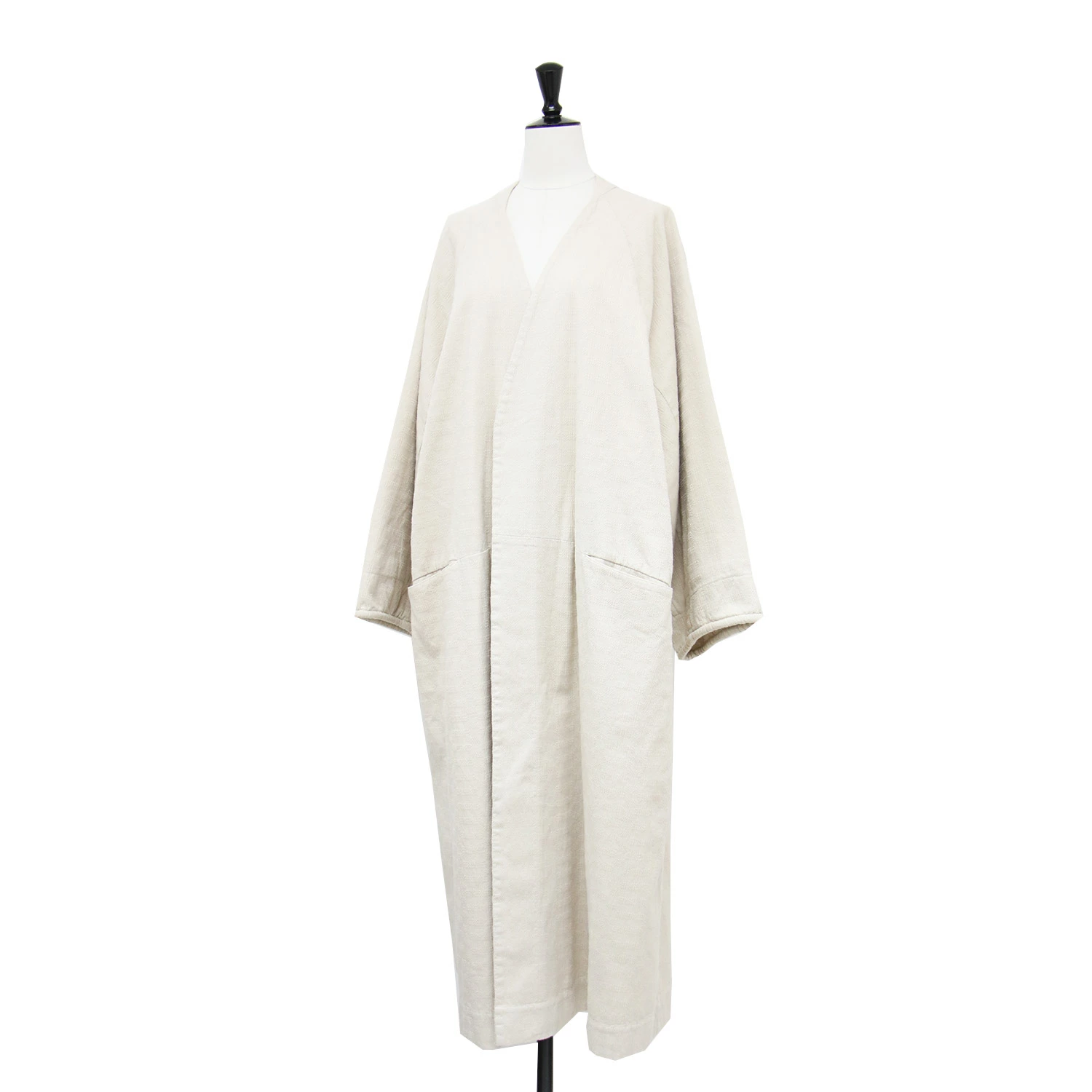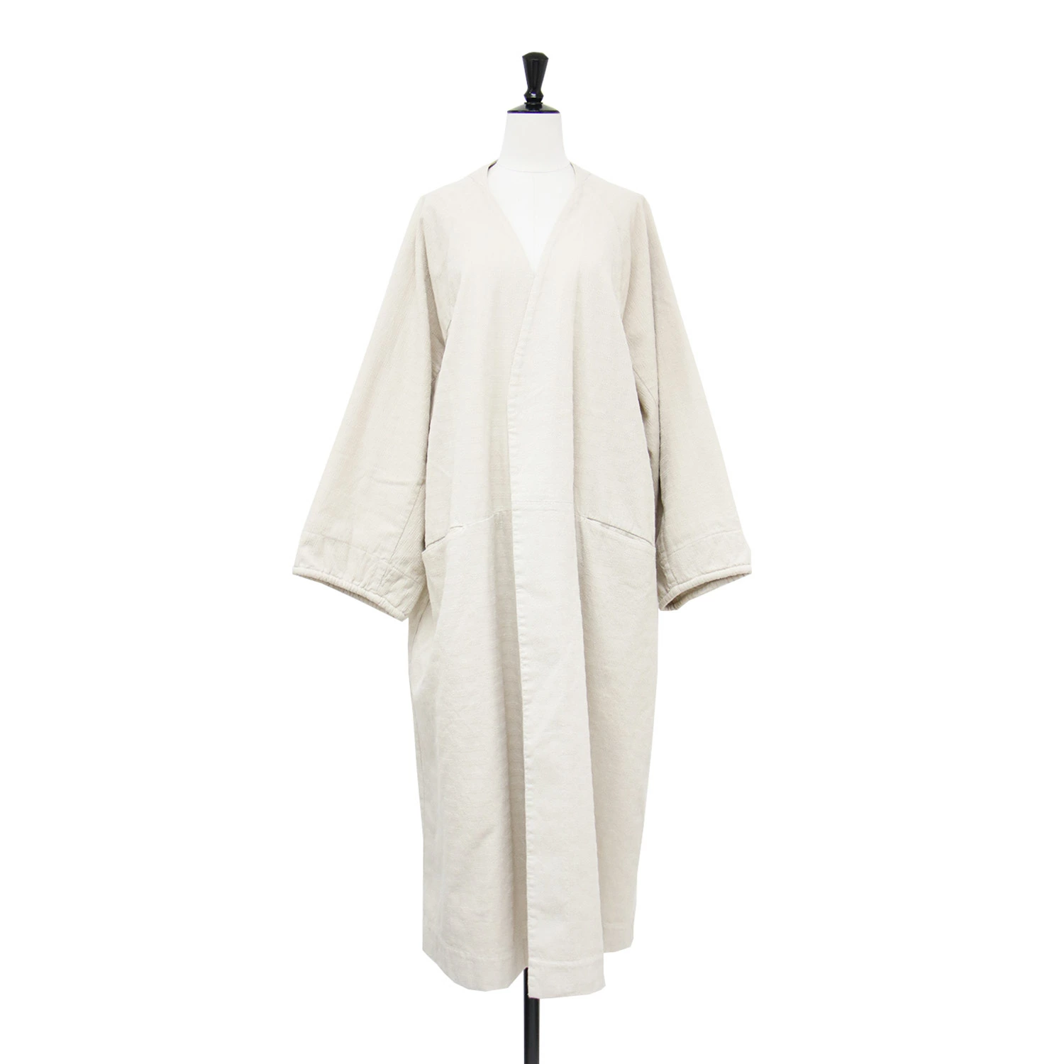 | 商品説明 | ◆肩のラインに沿うラグランスリーブ、肩幅や体型を選ばず、リラックスした着心地と自然な肩の落ち感 ◆フロントにボタンやジップがないガウンタイプの為、お手持ちのベルトや紐でウエストマークすることで、様々なシルエットが楽しめるアイテム ・ポケットあり |