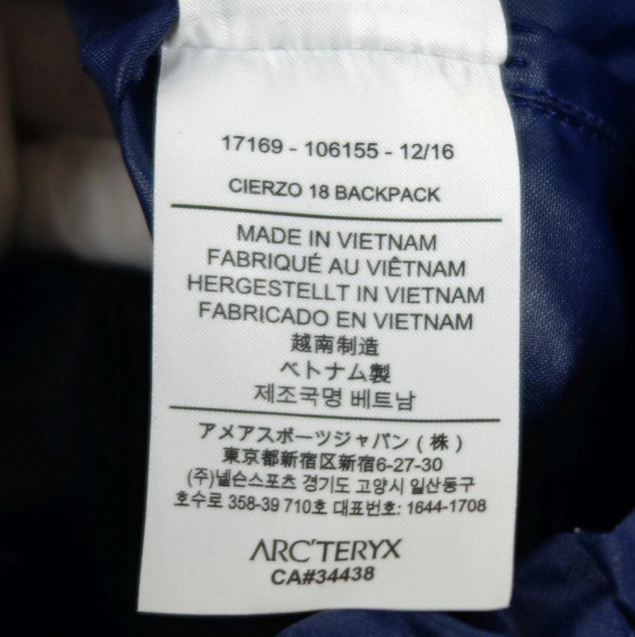 アークテリクス ARCTERYX CIERZO 18 シエルゾ 18L ロック クライミング パック バックパック リュック ザック トレイル ネイビー サイズ18L