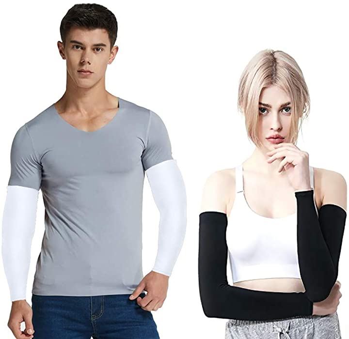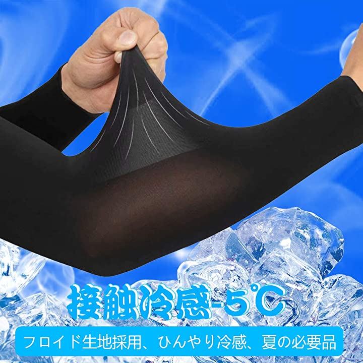 男女兼用ひんやり冷感アームカバーサラサラ、伸縮性と通気性優れ、吸水速乾滑り止めシリコン付き