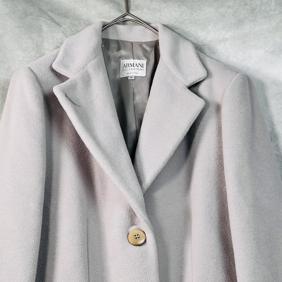 【ブランド】ARMANI COLLEZIONI【カテゴリ】チェスターコート【ポイント】アンゴラ カシミア混 ハンガー付【素材】アンゴラ50%ウール40%カシミア10%【状態】良好(胸元に小さなシミ有・画像参照)【管理番号】#MS847【サイズ】L相当(あくまで目安の表記サイズですので、実寸サイズを必ずご確認の上ご購入下さいませ)