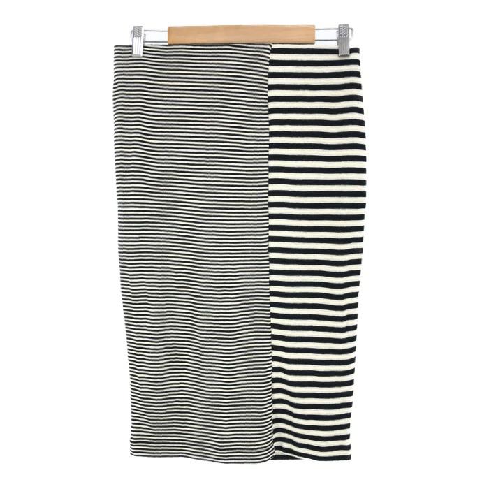 【管理番号】 015393s【ブランド名】 ARMANI EXCHANGEアルマーニエクスチェンジ【商品名】【アイテム】 タイトスカート【型番】【サイズ】 M 平置採寸(ウエスト:約38.5cm・総丈:約64.5cm)【色・柄】 モノトーン ボーダー柄【素材】 レーヨン97%ナイロン3%【付属品】【外観ランク】Bランク【内観ランク】【商品補足説明】 ウエストはゴム仕様です。