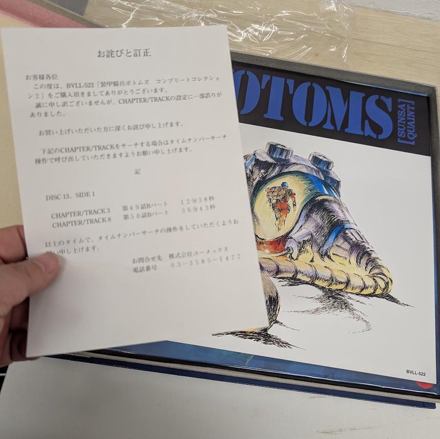 ※レーザーディスクになります。外箱は傷み、汚れございます。付録1「バトリングの友」付録2 「ボトムズウォッチ」※動作未確認