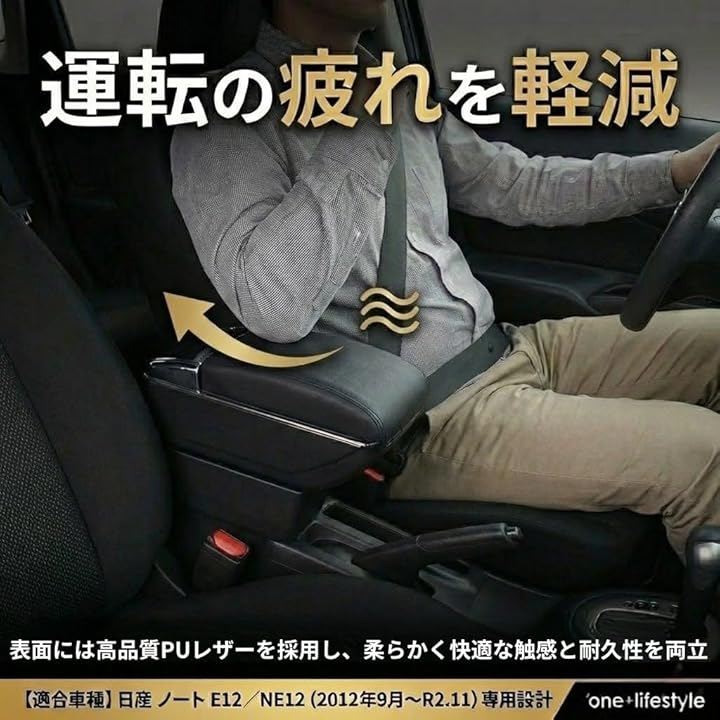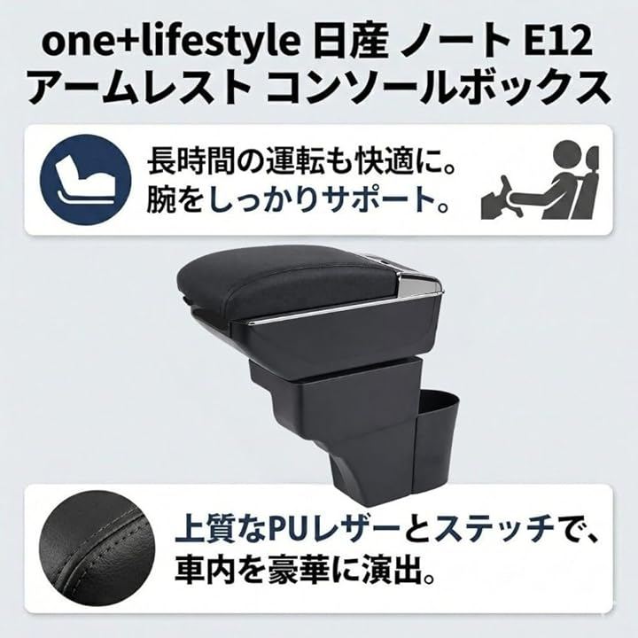 「適合車種」日産 ノート E12/NE12に対応した専用設計のアームレストコンソールボックスで、車内に自然にフィットします。