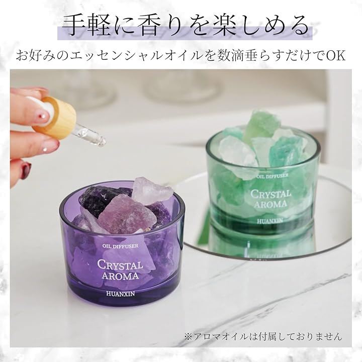 天然石のアロマストーンにエッセンシャルオイルを数滴垂らすだけで、やわらかな香りがふんわり広がります。