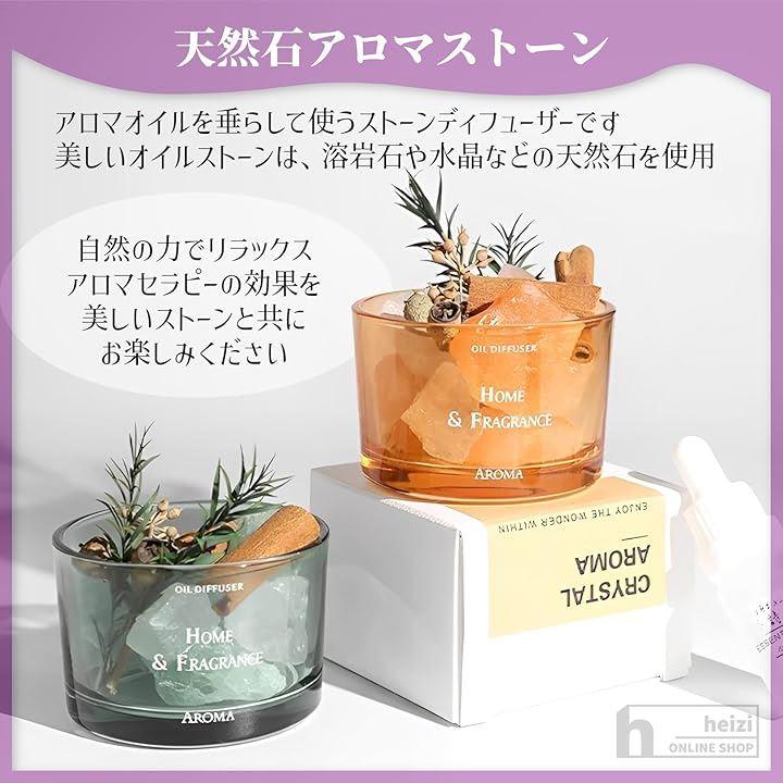「オイルの量で香りの強弱を調整可能」エッセンシャルオイルをストーンに数滴垂らすだけで、天然石からふわっと広がる優しい香りが、お部屋全体に広がります。