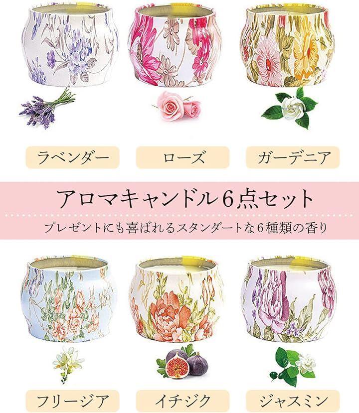 「スタンダートな6種類の香り」 このアロマキャンドルギフトセットにはの6つのフレグランスが含まれ、アロマテラピーをご家庭でいつでもお楽しみいただけます。