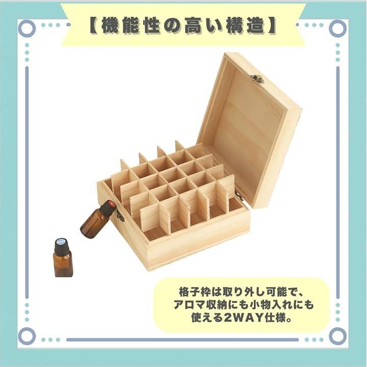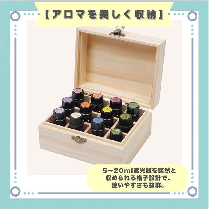 「アロマを美しく収納」5~20ml遮光瓶を整然と収められる格子設計で、使いやすさも抜群。
