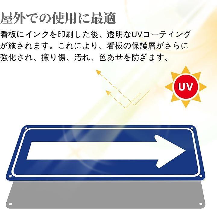 「優れる耐久性」アルミ製なので色褪せ防止はもちろん、錆にも強く、汚れやほこりなどから表面が保護され、より長持ちする看板です。