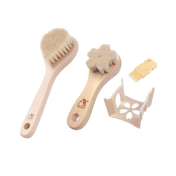 【山羊毛の洗顔ブラシ さくら(スタンド付)】浅草の職人が丹精込めて手作りしました天然毛の中でも毛質の細いヤギ毛だけを使用さくらの花びら型と肌触り最高のヤギ毛が毛穴までキレイに熟練職人が丹念に仕上げた洗顔専用のブラシです。洗顔に使用するブラシとして生み出されたブラシ毛には、天然毛の中でも毛質が細いヤギ毛だけを使用しました。その毛の柔らかさは手で触った瞬間に実感できるほど、非常にソフトに仕上がってます。また、ソフトなタッチながらも、しっかりと洗顔できるよう「さくら形」に毛を植え付けてあり、桜の花びら一枚一枚が微妙に自由に動き、洗顔時にはソープの泡立ちが良くなり、お肌の汚れと毛穴の奥までキレイにすることができます。浅草アートブラシが作るブラシは、毛をハンドルに植毛する時に、接着剤を一切使用しません。接着をせずに植毛できる技術は、日本の職人ならではのもの。もちろん、毛は抜けにくくなってます。
