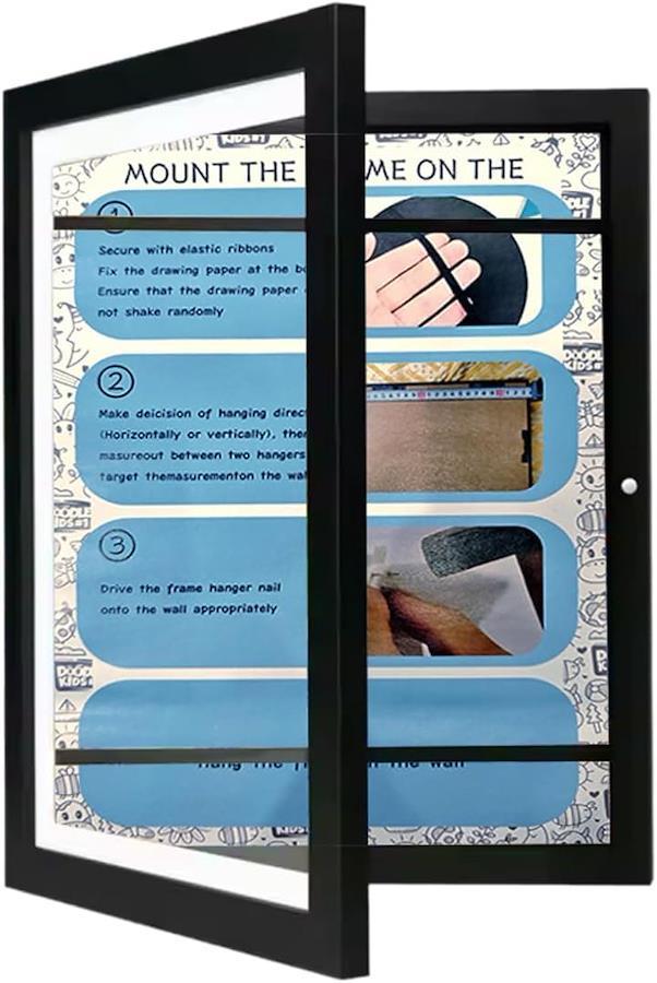 A4まで対応し、子供の絵や賞状、ポスターなども展示可能。