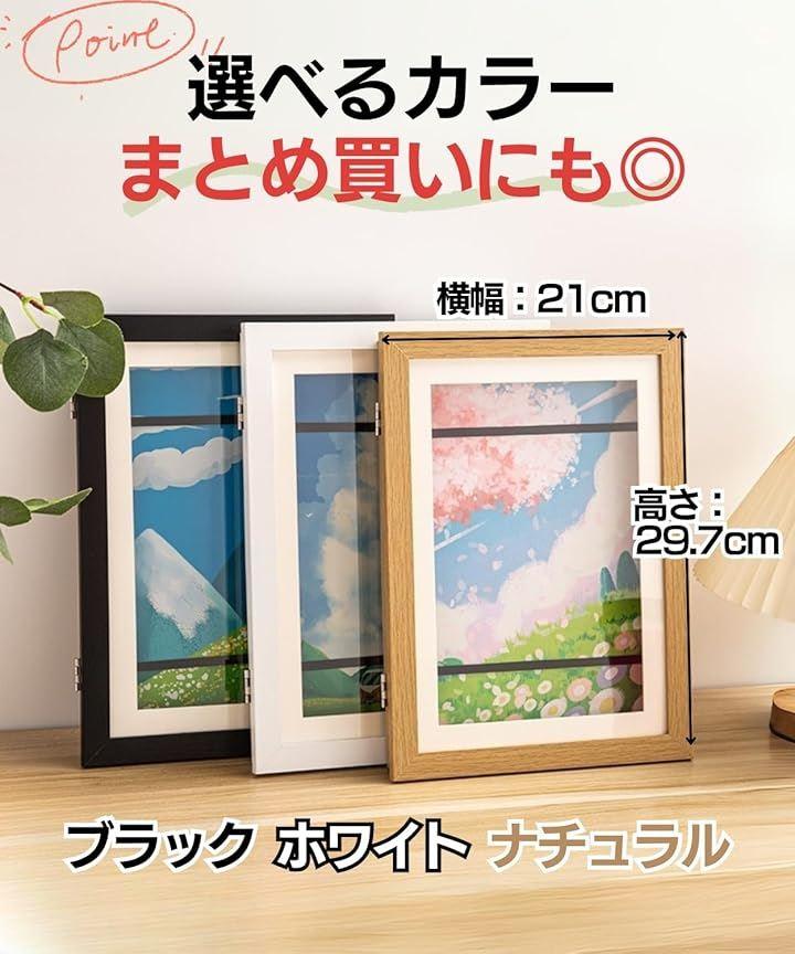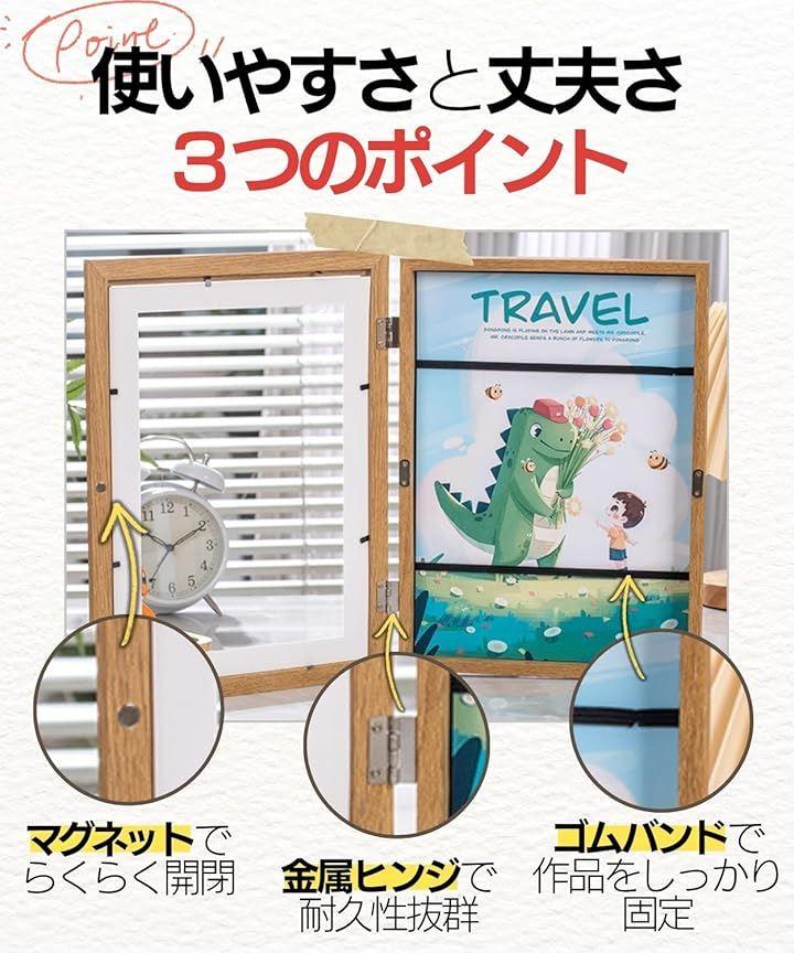 厚みのある構造なので、平面の絵だけでなく立体的な工作や油彩パネル、写真アルバム、手作りカレンダーなども飾れます。