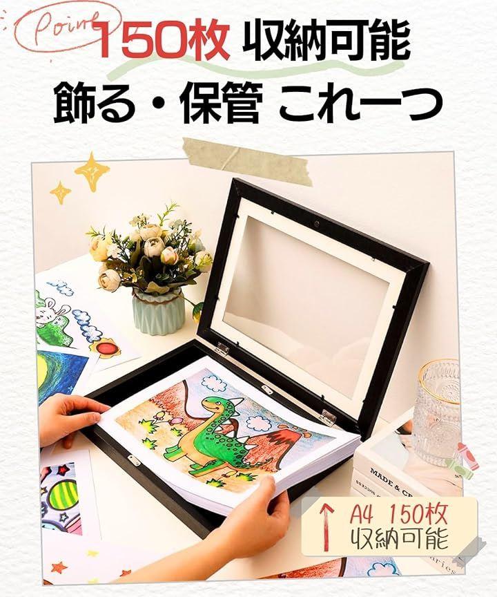 子どもの作品を捨てずに残したい方、飾りながら収納もしたい方におすすめの「Simple joys アートフレーム」。