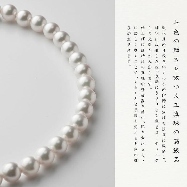 淡水貝であるイケチョウ貝(池蝶貝)を貝核に使用した純日本製の貝パールネックレス。