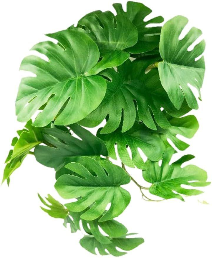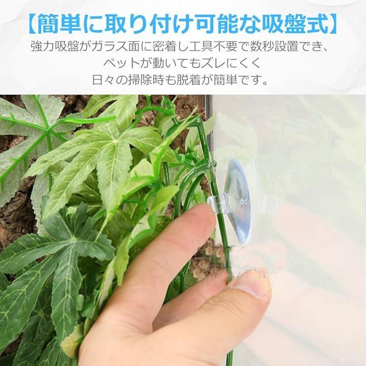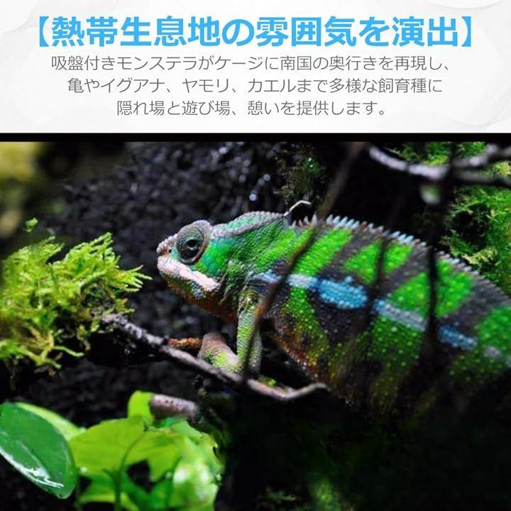「熱帯生息地の雰囲気を演出」吸盤付きモンステラがケージに南国の奥行きを再現し、亀やイグアナ、ヤモリ、カエルまで多様な飼育種に隠れ場と遊び場、憩いを提供し、日々の観察も楽しく。