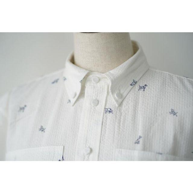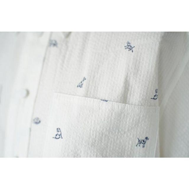 べースとして使用している生地はサッカー地。混率を混ぜて、収縮差で凹凸を出す加工サッカーもありますが、この生地は綿100%の番手差のある糸を使用し、サッカー織機を使用する事で仕上げた天然サッカー素材です。