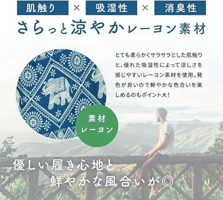 「軽量レーヨンで快適」 通気性の良いレーヨン素材。