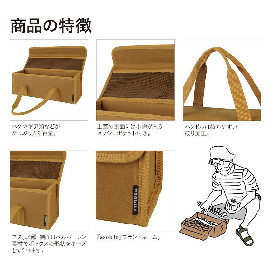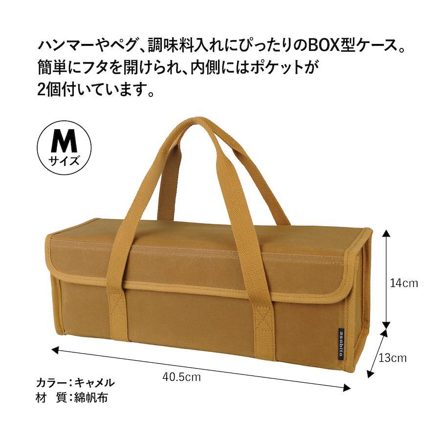 「asobito(アソビト) ツールボックス Mサイズ ペグ ハンマー 防水帆布 綿帆布ケース」定番のツールボックスがさらにバージョンアップして登場。・フラップ式のフタは中身が見やすく、ツールの出し入れも簡単なBOX型ケース。ハンマーやペグ、調味料など、収納するものに合わせて選べる3サイズ展開。・簡単にフタを開ける事ができ、内側にはポケットが2個ついています。・ハンドル部分は持ちやすい絞り加工。・フタにも底部と側面と同じベルポーレン素材が追加され、自立するだけでなく上から重ねてもボックスの形状をしっかりとキープできるようリニューアル。他社製品と比較しても丈夫な作りで、中身を安心して運搬できます。※サイズ・重さは商品により多少異なります。