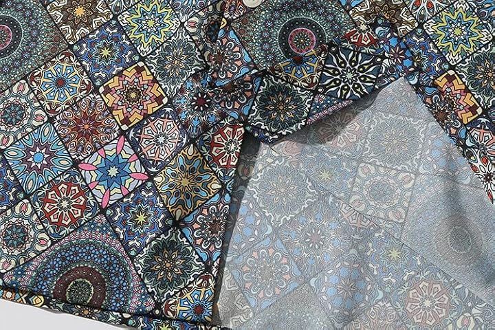 *印象に残るパッチワーク風総柄プリント。1枚でスタイリングが完成