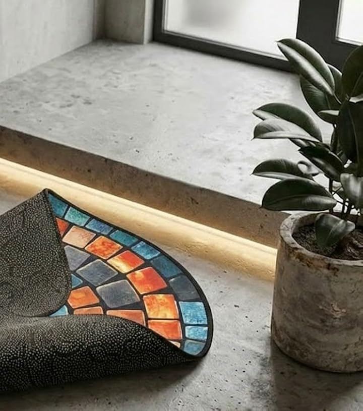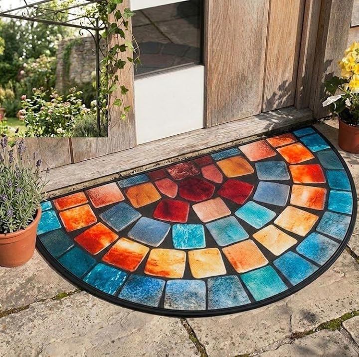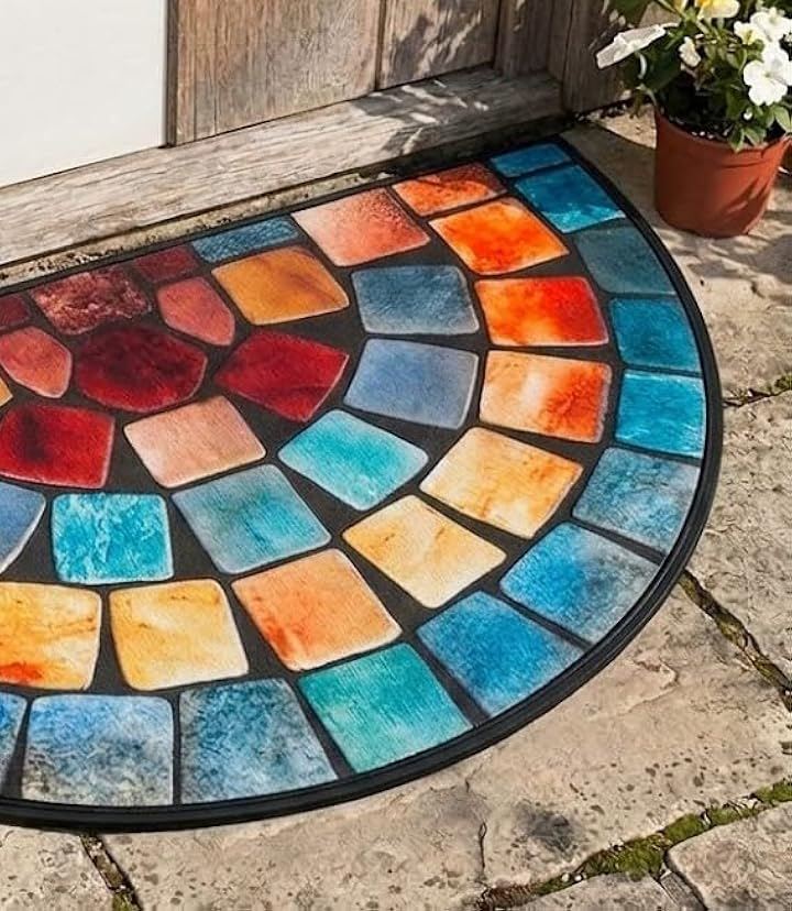 Aspercio Stylish Entrance Mat, Semi-Circular, Thin, Suitable for Outdoor and Indoor Use, Non-Slip, Clean Mat, Retro European Style