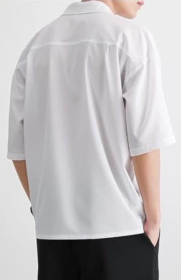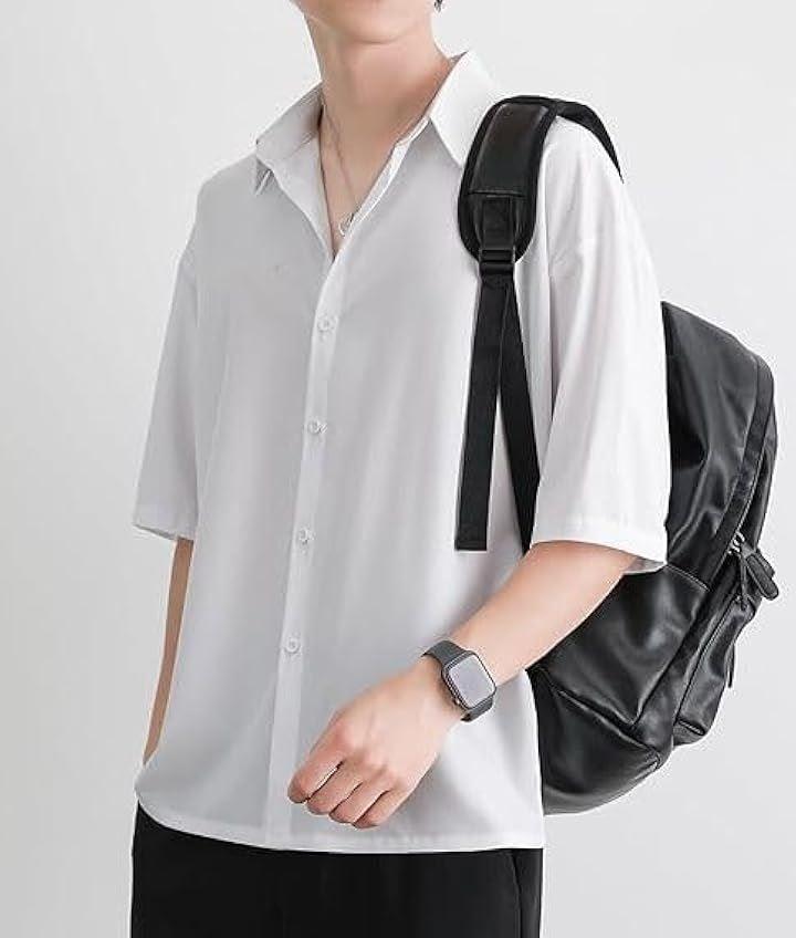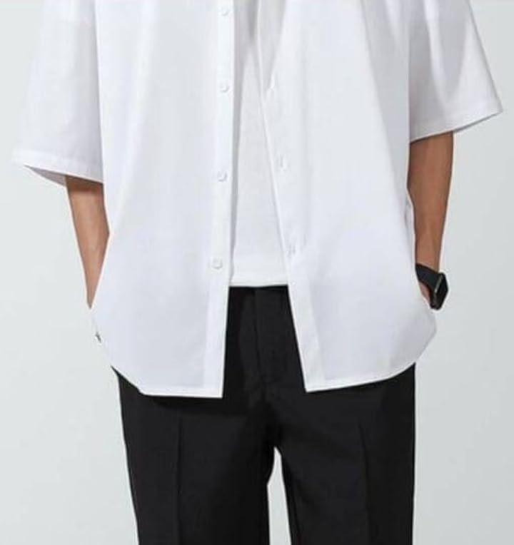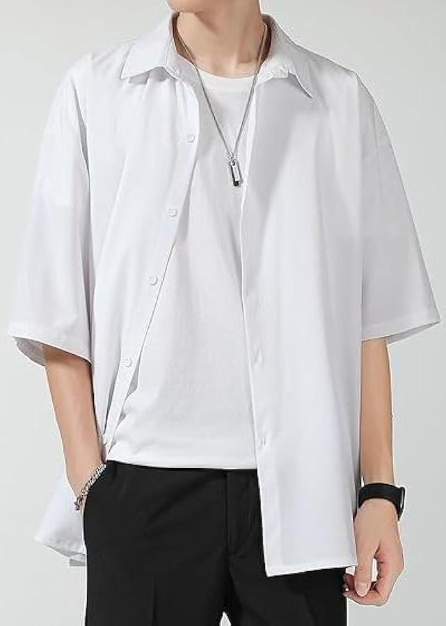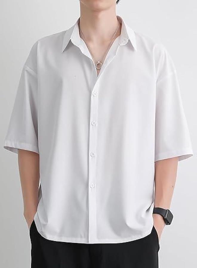 Aspersio 5/8 Sleeve Fashionable Casual Shirt, Solid Short Sleeve, Mode Style, Basic, Adult Tops, Men's, Collared, Street Style, Soft, Front Buttons, Retro, No Hood, Handsome, Cool, Gentleman, Comfortable, Smooth, Breathable, Lightweight, School, Refreshing