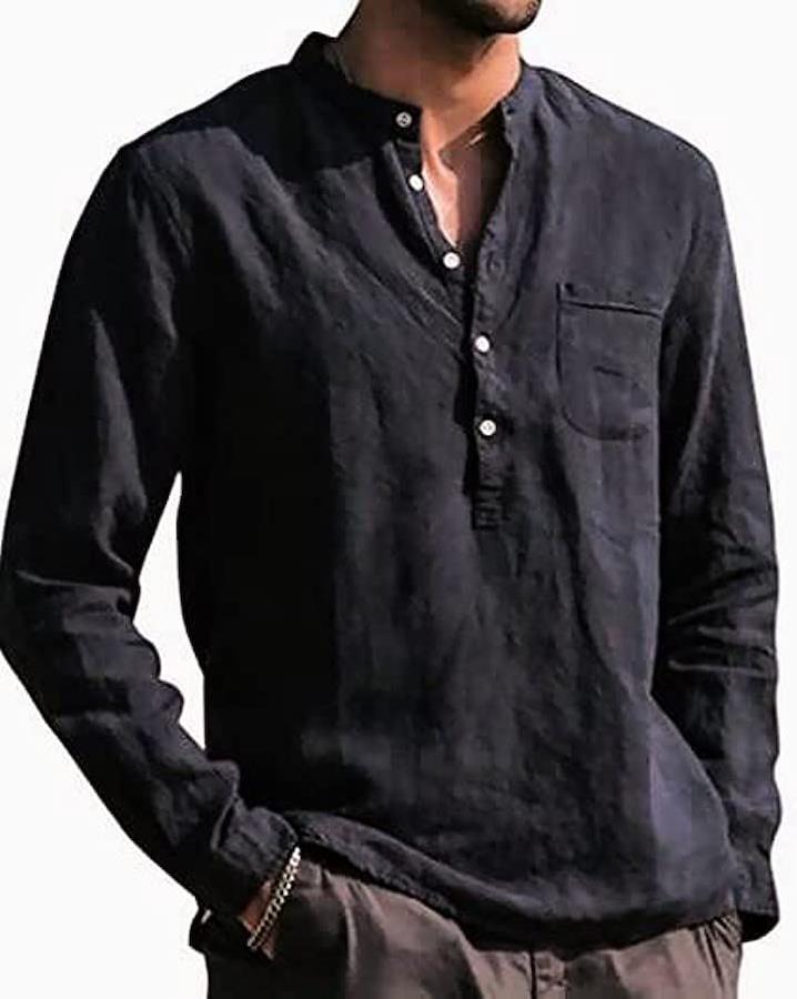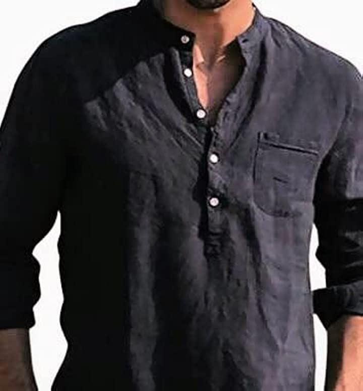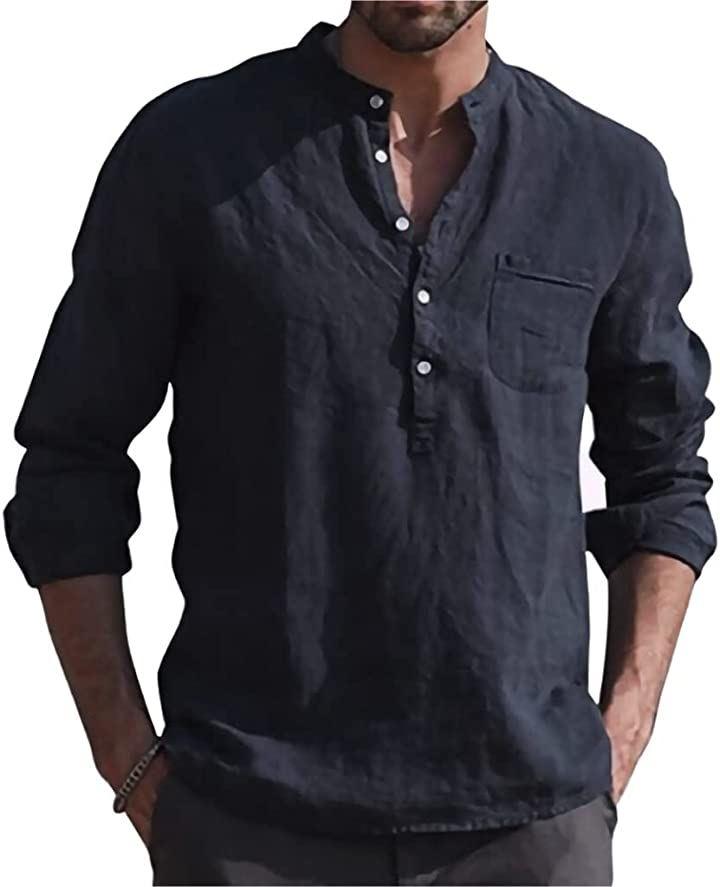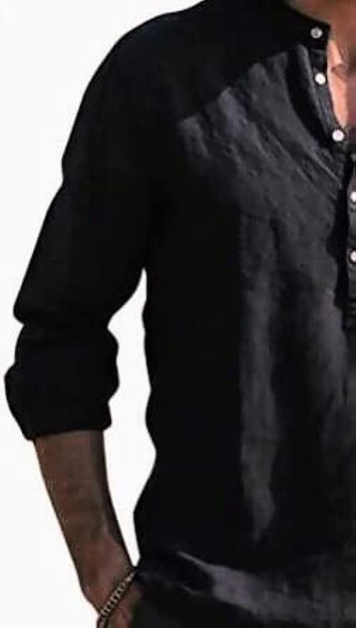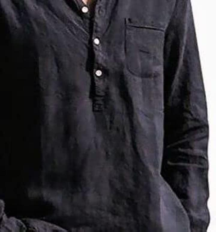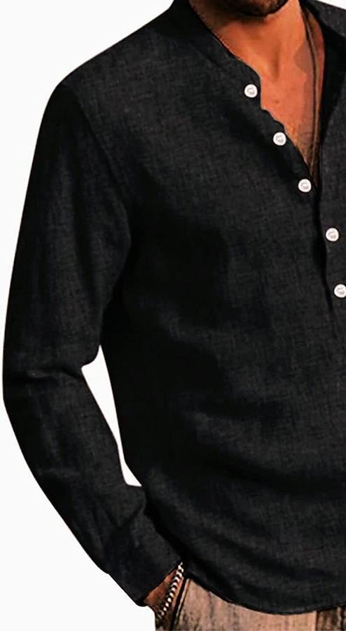 ・*ほどよい抜け感とスッキリとした見た目がとても上品* *重ね着にもぴったりなノーカラーシャツはきちっと感を残しつつも優しさのある印象を演出* *ゆるさとかっこよく決まるデザインがマッチして男らしさが引き立ちます*