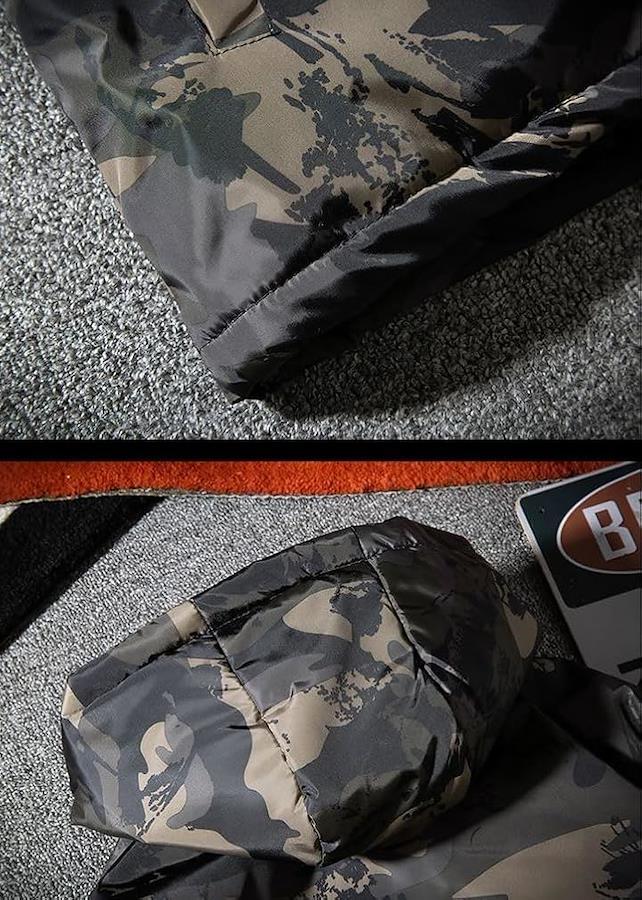 カッコ良さを強く打ち出せる迷彩柄のフード付きアウター。